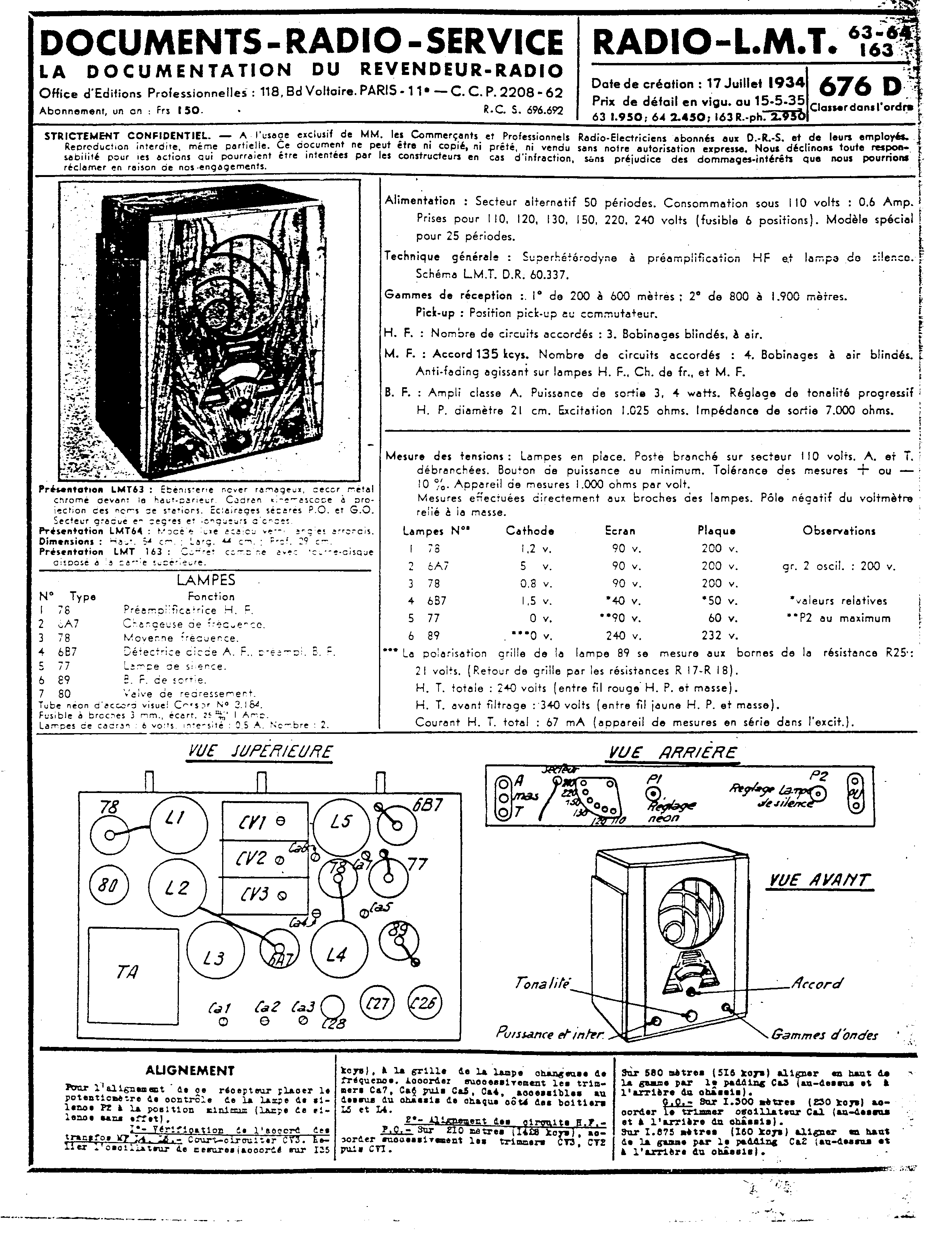 L.M.T. 63, 163, 64 Schéma Radio-Service
