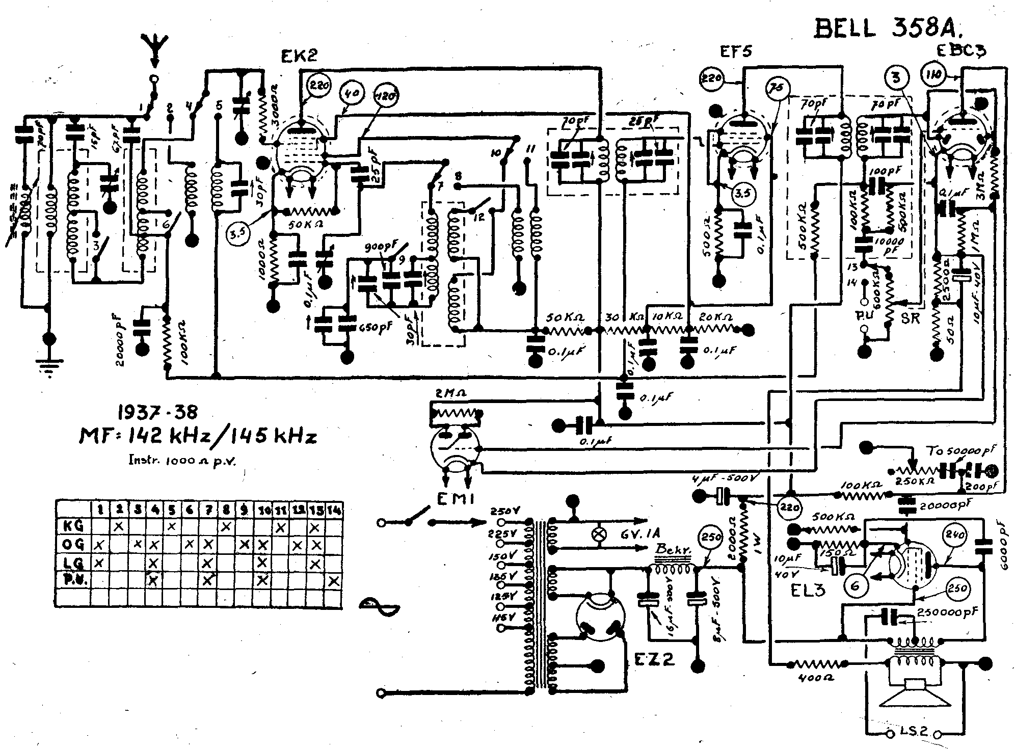 Radiobell 358 A européen Schéma Schémathèque Brans