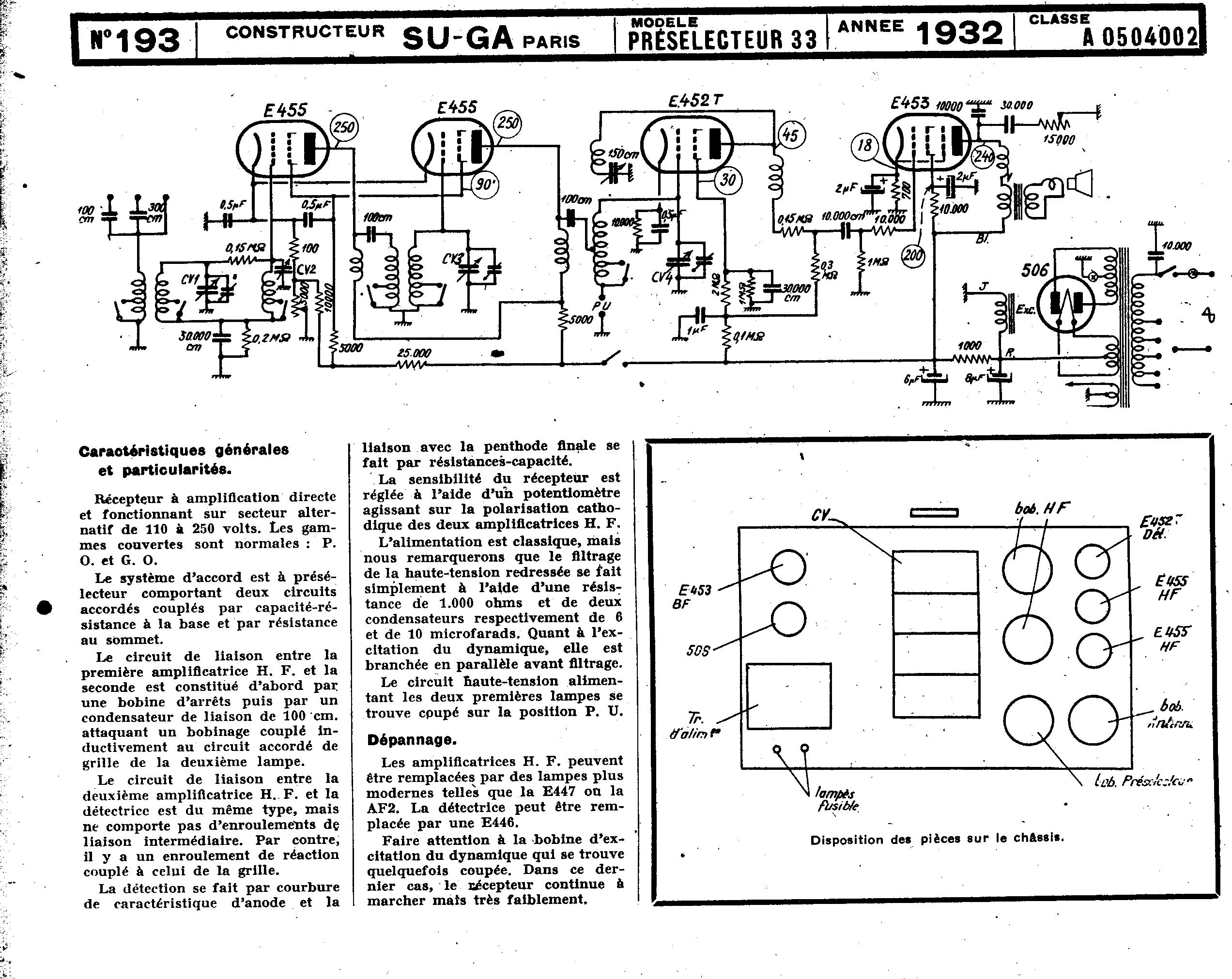 Su-ga Préselecteur 33 Schéma Schémathèque Toute la Radio