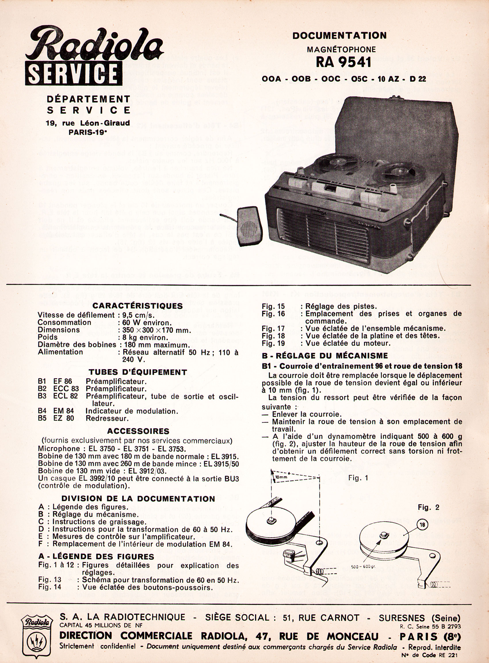 Radiola RA 9541 Manuel de service (pages 1 à 7)