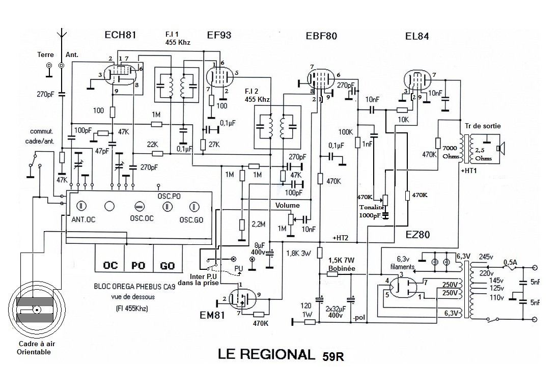 Le Régional 59 R schéma (relevé et redessiné, lampes européennes)