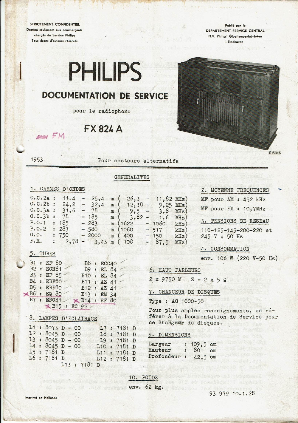 Philips FX 824 A Manuel de service