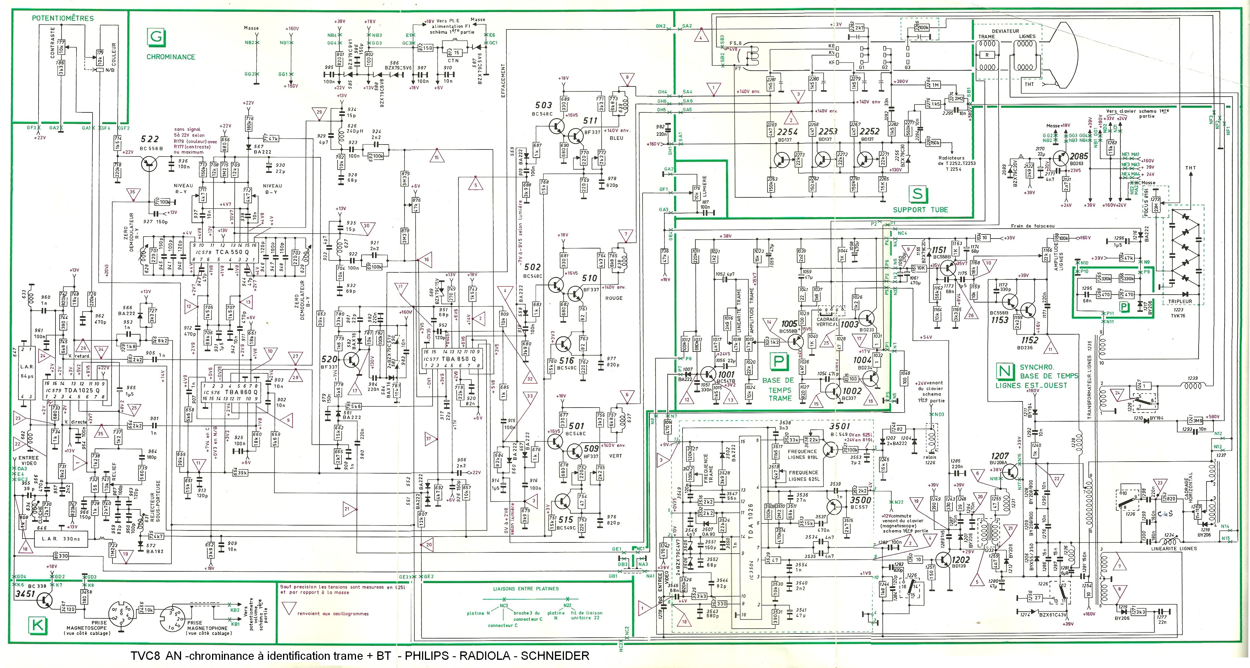 Schéma TVC8 chrominance Ancienne norme (identif trame) & BT